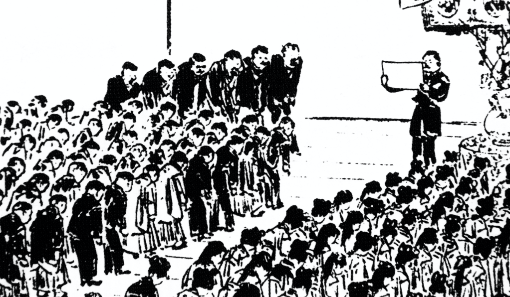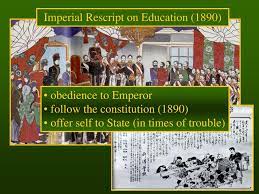 After moving the emperor to Tokyo, the Meiji government started compulsory education in 1886. Issued four years later, The Imperial Rescript on Education (the emperor’s commandments, a Japanese version of Ten Commandments) defined the official ethics for Japanese education—obedience to the emperor and the state.