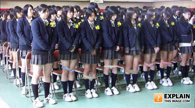One girls’ high school in Tokyo checked on students to see if they were wearing the regulation underwear. Those with polka-dot or colored panties, instead of standard white, were forced to stand at the front of the class while the teacher denounced them having the “mentality of bar hostesses.” (Ken Schoolland, Shogun’s ghost: the dark side of Japanese education, p24)